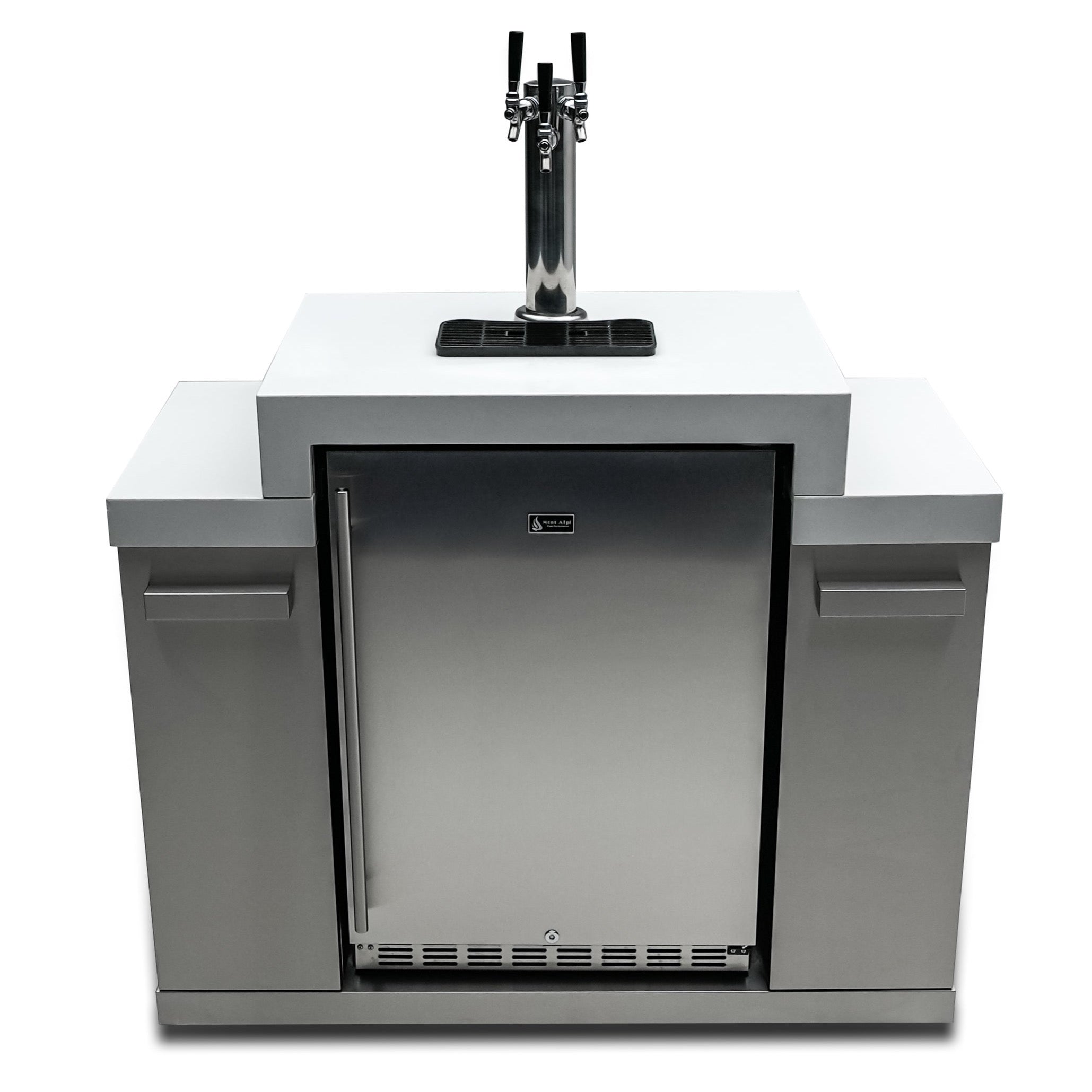 The Mont Alpi Triple tap Kegerator with digital display can contain up to three kegs at a time. The tiered top surface is finished in white granite for easy clean and extra class, a pour tray is also included for handling spills and over-foam. The digital temperature control offers extra precision no matter what environment you enjoy your beer.
