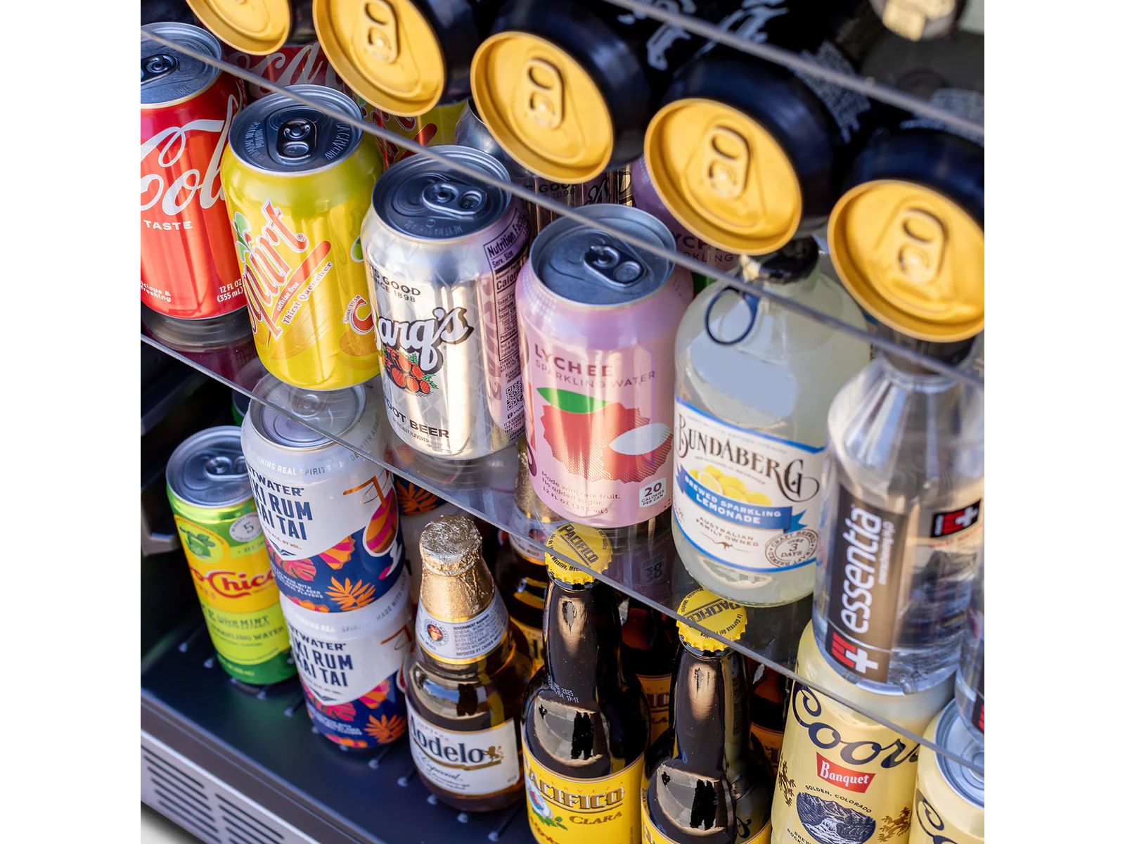 Inside, sleek glass shelves and a black interior cabinet create a clean, modern aesthetic. The soft-closing door, auto-defrost system, and anti-vibration technology ensure quiet and convenient operation. A factory-installed lock adds an extra layer of safety and security, keeping your beverages and perishables protected.