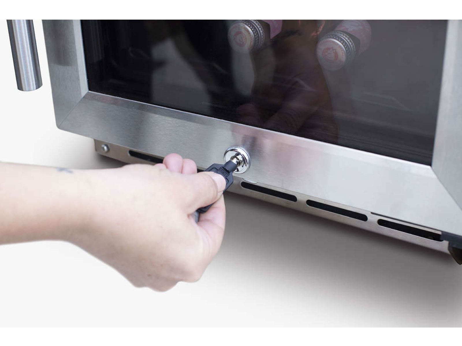 Equipped with an electronic digital temperature controller, anti-vibration technology, and wooden extension racks, the Summerset Wine Cooler ensures quiet operation and smooth accessibility. The locking door and front-vented design make it a secure and seamless built-in or freestanding addition to your outdoor kitchen.